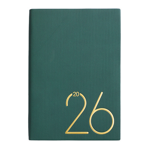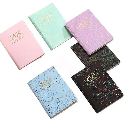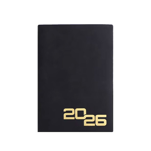 A7 2026 cuero suave cubierta cuaderno láser portátil bolsillo logotipo personalizado calendario planificador diario proveedor de oficina