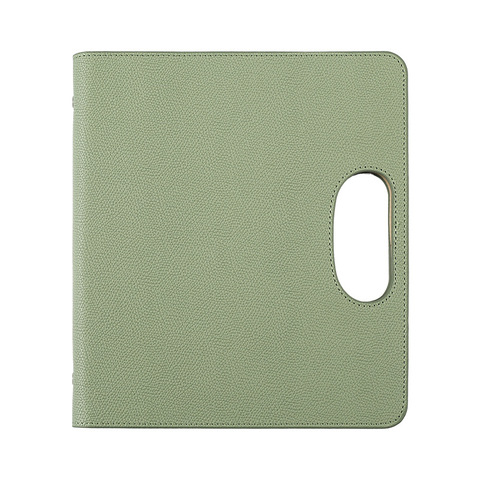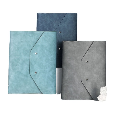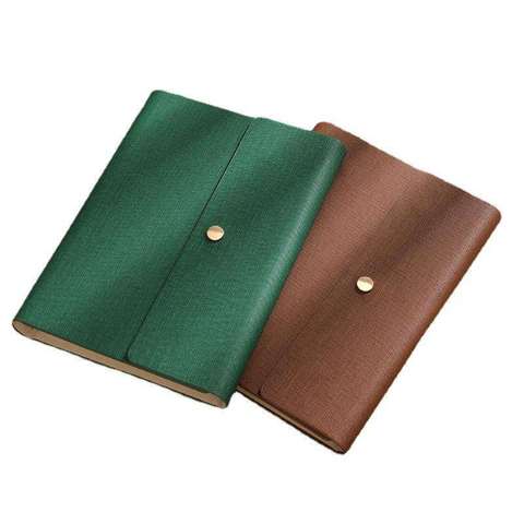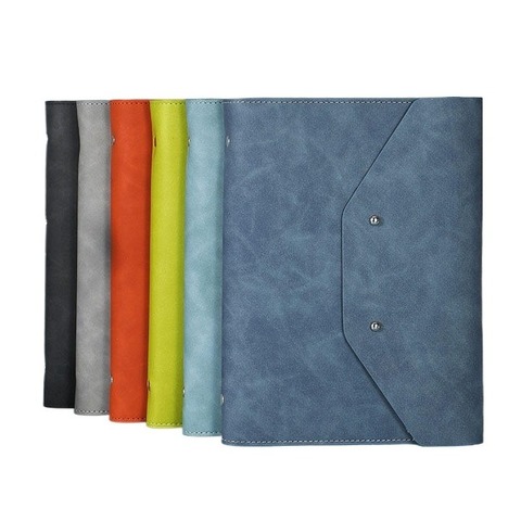 Exquisito cuaderno de hojas sueltas A6 PU, tapa dura, botón de latón, bolsas de archivo, regla, proveedor de oficina interior, logotipo personalizado