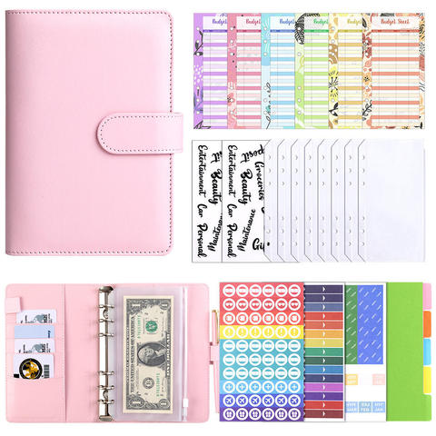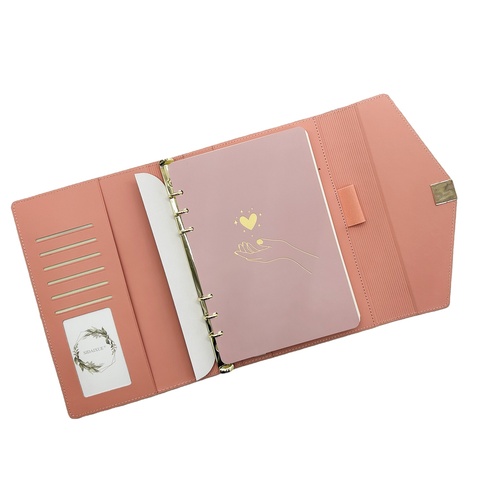 Carpeta de cuaderno de hojas sueltas de cuero PU A6 personalizada, agenda planificadora de presupuesto, hebilla de almacenamiento de efectivo, libro de cuentas, proveedor de regalos de oficina